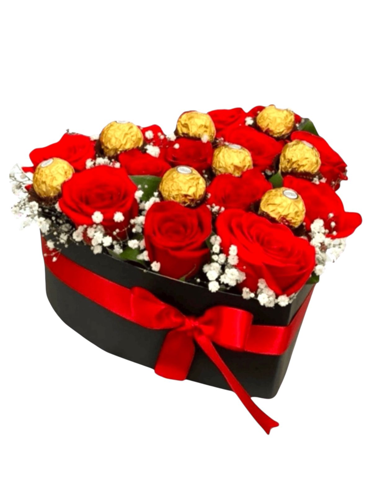 Corazon de rosas con chocolate ferrer rocher.