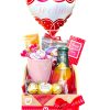 Lindo arreglo floral de rosas y girasol con tarjeta de San Valentín.