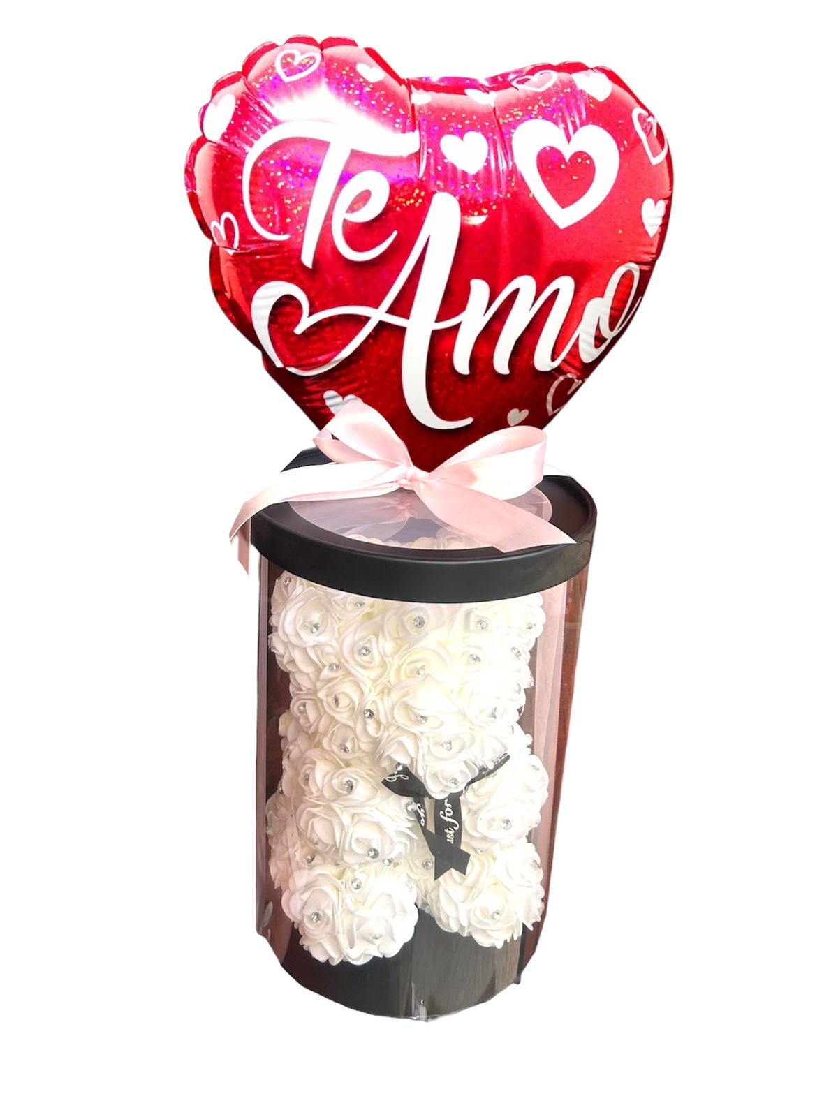 Hermoso y delicado pack compuesto por un osito de goma Eva y un globo te amo.